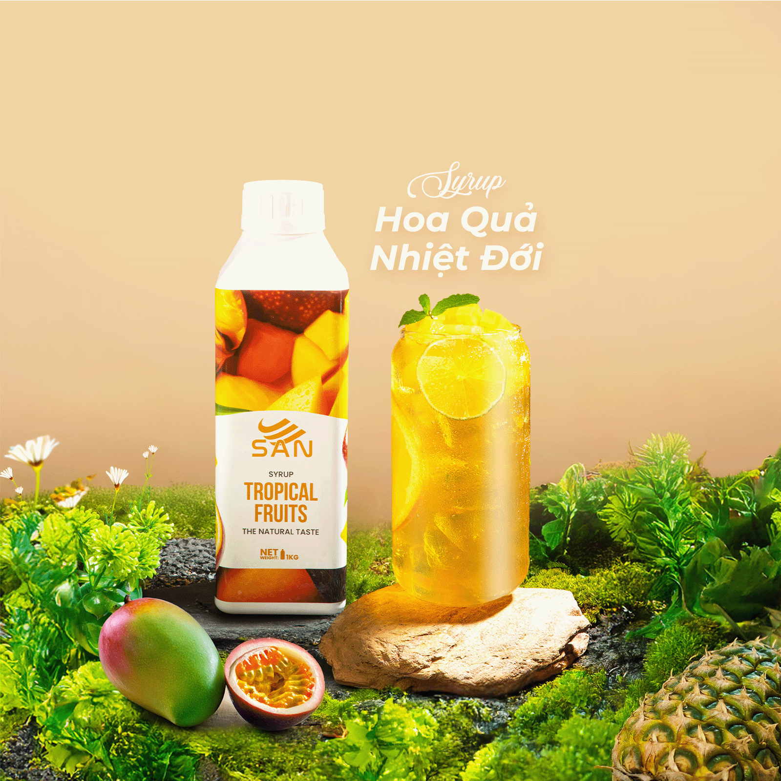 - Syrup Hoa Quả Nhiệt Đới: Bùng nổ hương vị nhiệt đới với sự hòa quyện hoàn hảo giữa Xoài, Dứa và Chanh Dây, chua ngọt hài hòa, tươi mới.