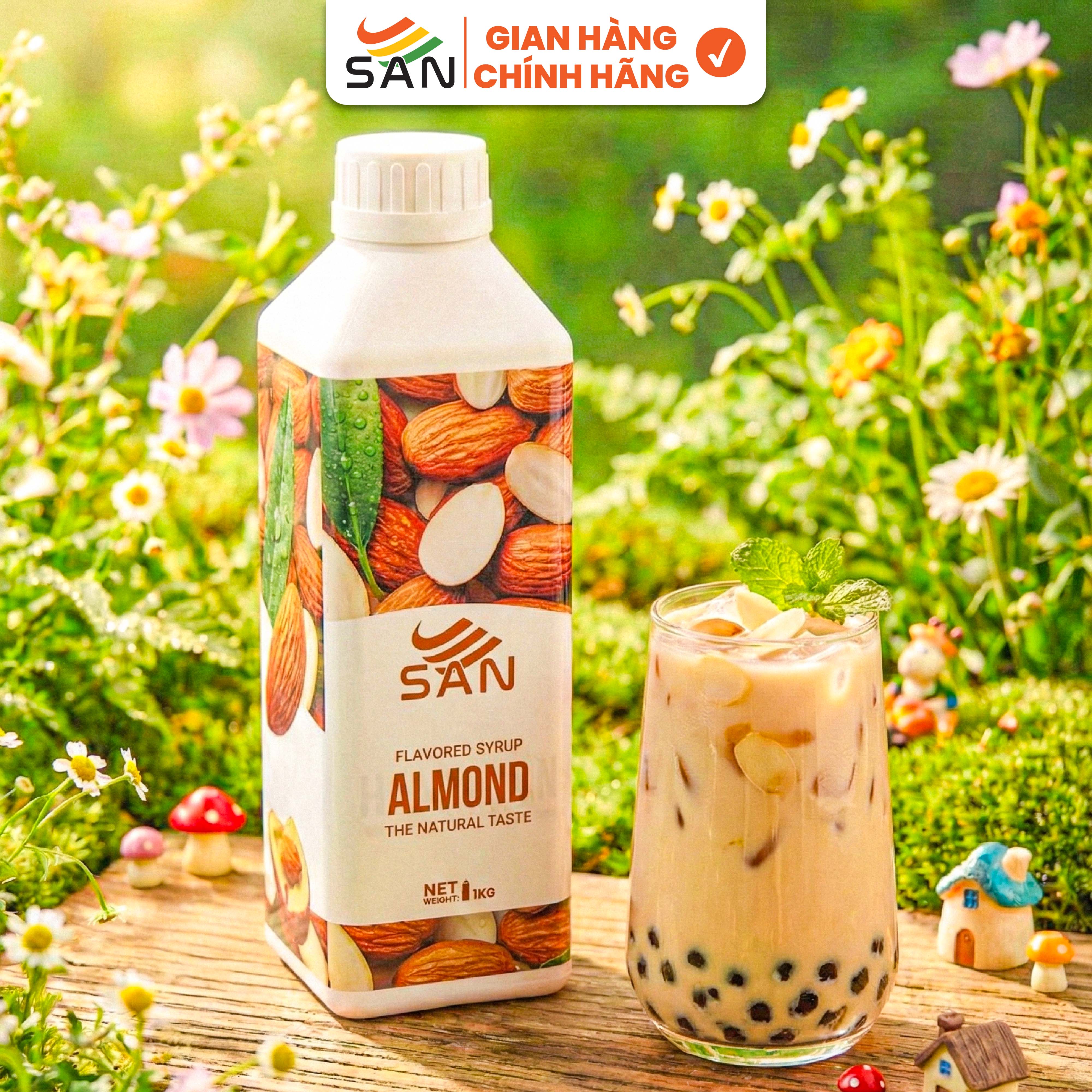 SYRUP HƯƠNG HẠNH NHÂN Chai 1Kg, đậm đà, có chai chiết 100ml tặng công thức, latte, trà sữa, làm bánh, pha chế đa dạng KHUYẾN MÃI - ƯU ĐÃI